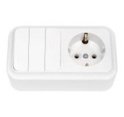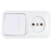 Блок состоит из выключателя одноклавишного и розетки с заземляющим контактом открытой установки. Материал корпуса изготовлен из пластика АБС, обеспечивая прочность и долговечность изделия. Степень защиты блока – IP20, что обеспечивает защиту от пыли и посторонних предметов. Возможность горизонтальной и вертикальной установки.