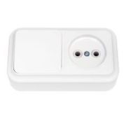 Читать все статьиБеларусь Блок: выключатель одноклавишный + розетка с заземлением наружный Пралеска
