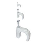 Круглый крепеж 6 мм с гвоздем предназначен для фиксации круглого кабеля к деревянной поверхности. Такой крепеж будет особенно полезен для использования на даче или в частном деревянном доме. Представляет собой дугообразную скобу белого цвета, выполненную из качественного пластика, с гвоздем в специальном отверстии. Скоба используется для мгновенного и надежного крепления проводов и кабелей к поверхностям стен, несущих конструкций и потолков. Гвоздь выполнен из закаленной стали, что позволяет закрепить его даже в плотной и твердой древесине без риска погнуть или сломать.